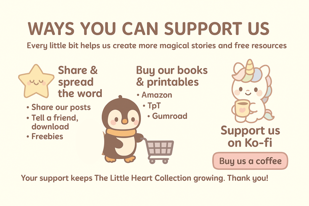 💛 Every little bit of support helps us continue creating magical stories, uplifting activities, and free resources for children and families. Whether you share our work with a friend, purchase a book, or simply follow along on social media, you’re helping us spread kindness and joy one small heart at a time.